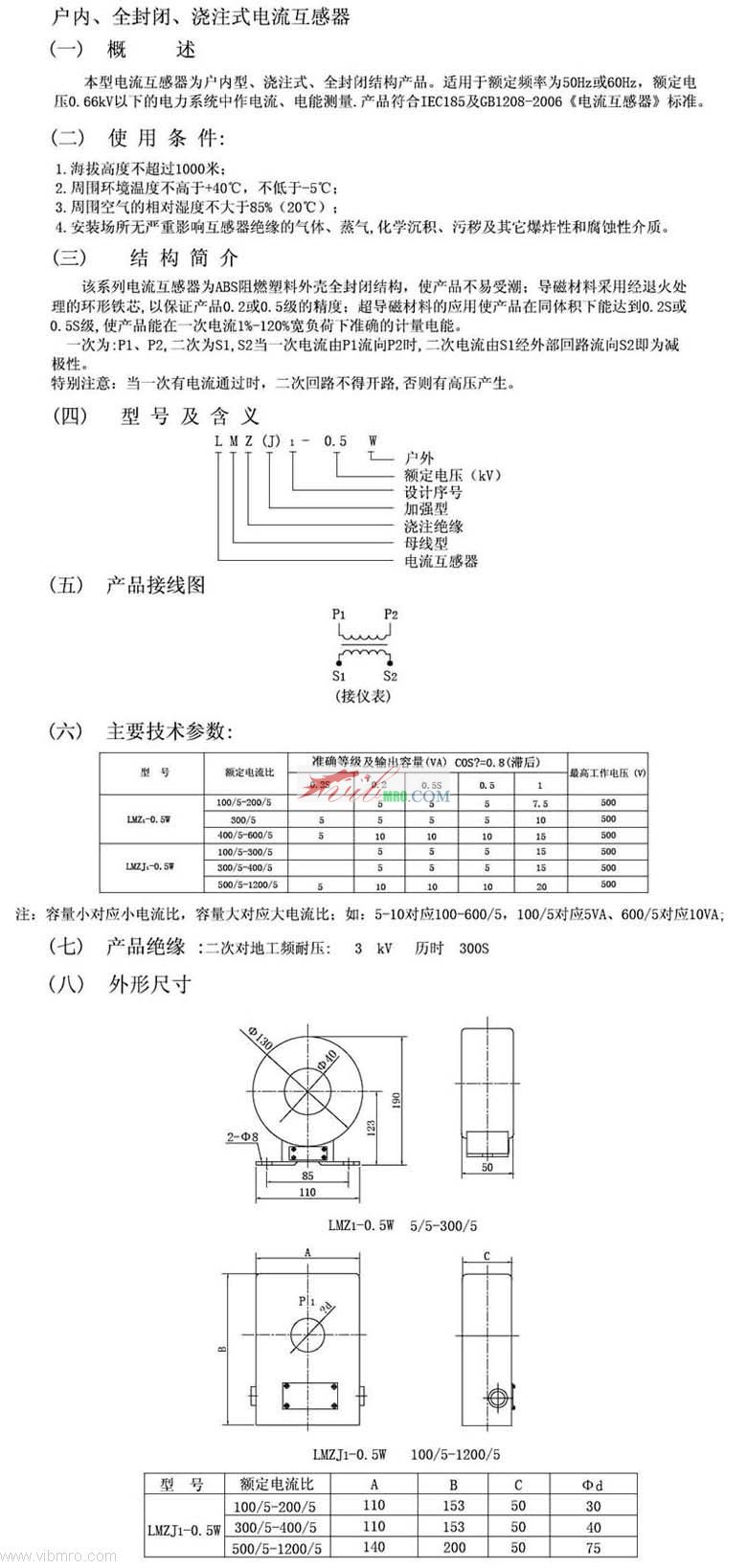 LMZJ1-0.66TH户外型浇注式电流互感器